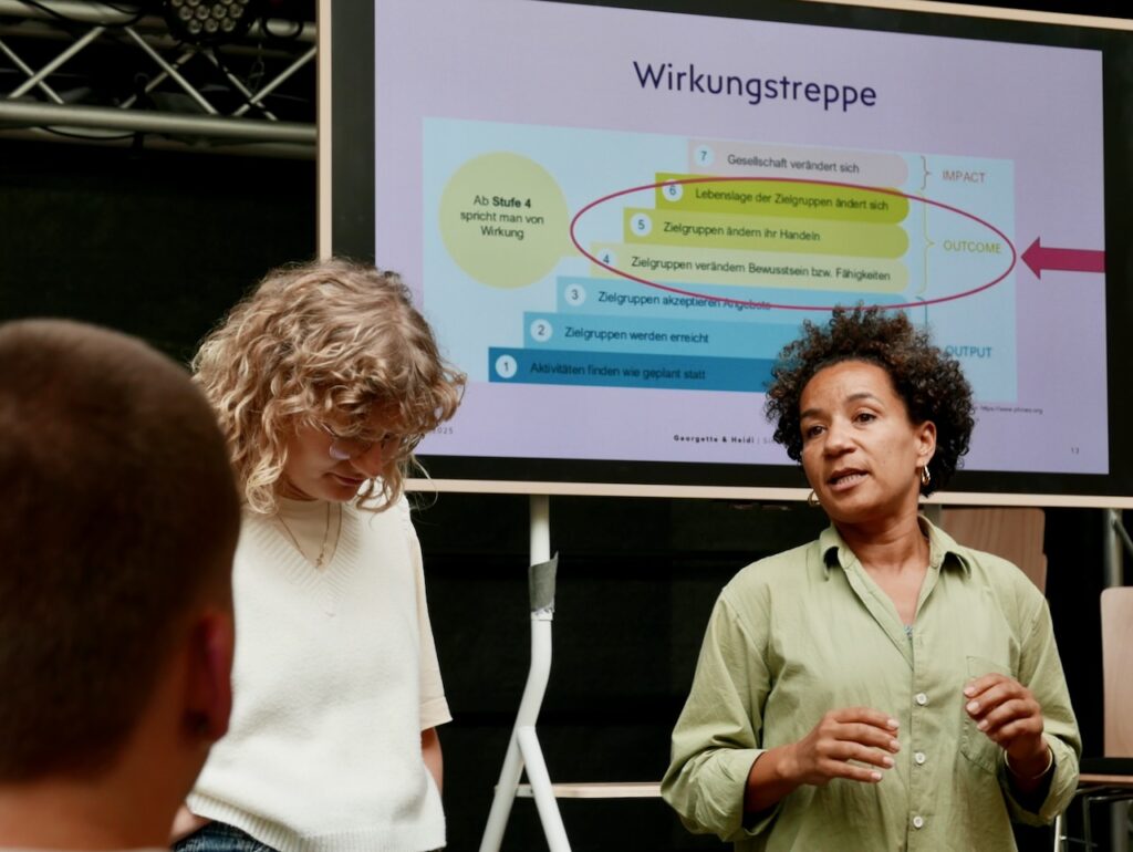Um das zu prüfen, formulieren wir Lernziele, evaluieren unser Projekt kontinuierlich und entwickeln es auf Basis der gewonnenen Erkenntnisse stetig weiter. In diesem Jahr haben wir unsere Wirkungslogik und die damit verbundenen Ziele erstmals in einem Wirkungsbericht zusammengefasst.