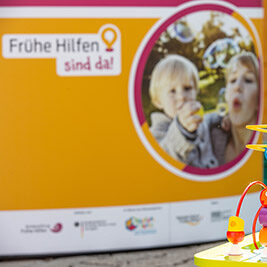 Ein Beispiel dafür, wie wir unsere Zielgruppe erreichen, ist „Frühe Hilfen sind da!“ – ein Modellprojekt des Nationalen Zentrums Frühe Hilfen (NZFH) in Zusammenarbeit mit ländlichen Kommunen. Das mobile Angebot richtete sich an Erziehungsberechtigte mit Kindern von 0 bis 3 Jahren, insbesondere solche in psychosozial belastenden Lebenssituationen. Ein mit Spielmethoden und Materialien ausgestatteter Kleinbus fuhr dazu quer durch die Bundesrepublik. Auf öffentlichen Plätzen, lokalen Veranstaltungen und vor Kindergärten wurden die Inhalte und Angebote der Frühen Hilfen an junge (werdende) Eltern und Erziehungsberechtigte vermittelt. SINUS hat das Projekt im Auftrag des NZFH mitentwickelt, koordinierte die Einsätze in den Kommunen und war gemeinsam mit den Fachkräften vor Ort.